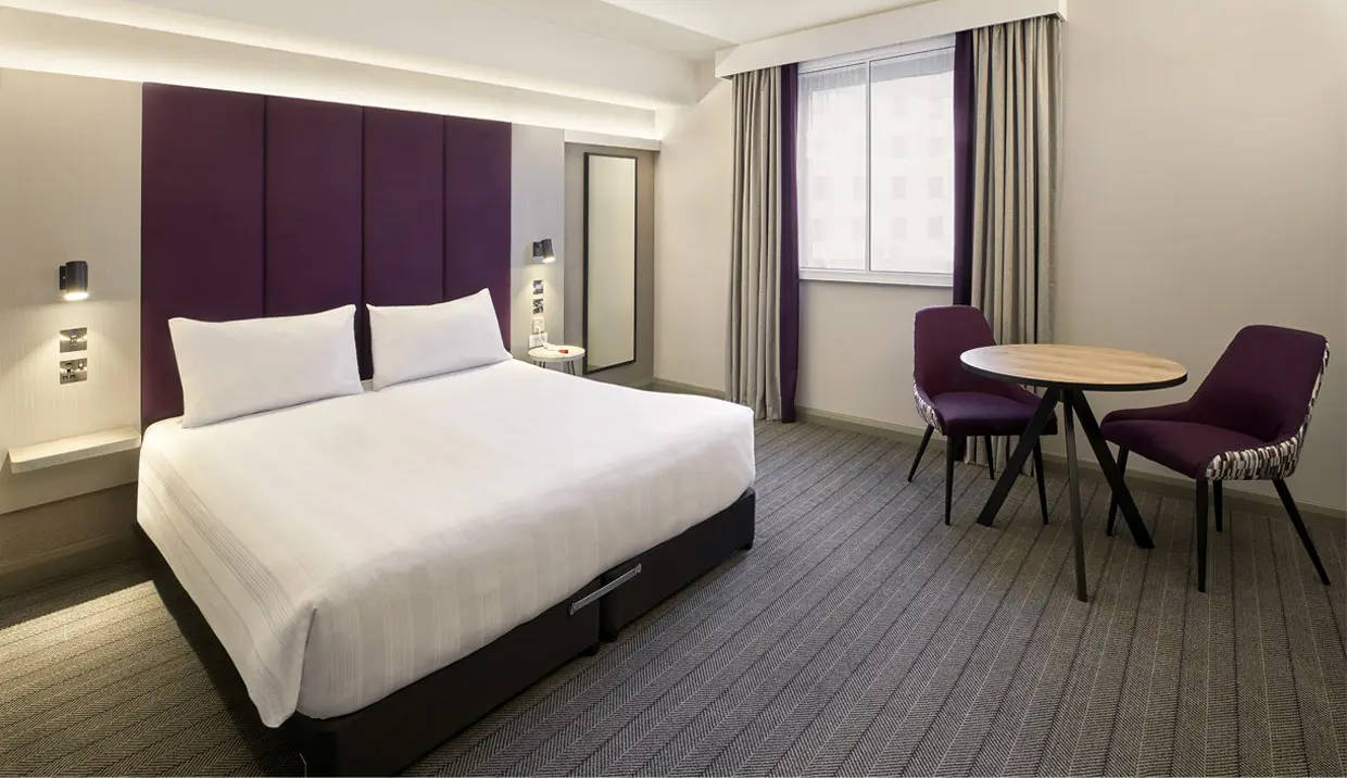 As well as more space, a double or kingsize bed between 480mm and 520mm in height, and wider entry bathrooms with a lowered bath or wet room, our Premier Plus Accessible rooms offer Ultimate Wi-Fi, a coffee machine, a mini-fridge, bedside USB ports, an iron, an upgraded workspace and more. At our hotels with 480mm height mattresses, our teams may be able to raise the bed for easier wheelchair access.