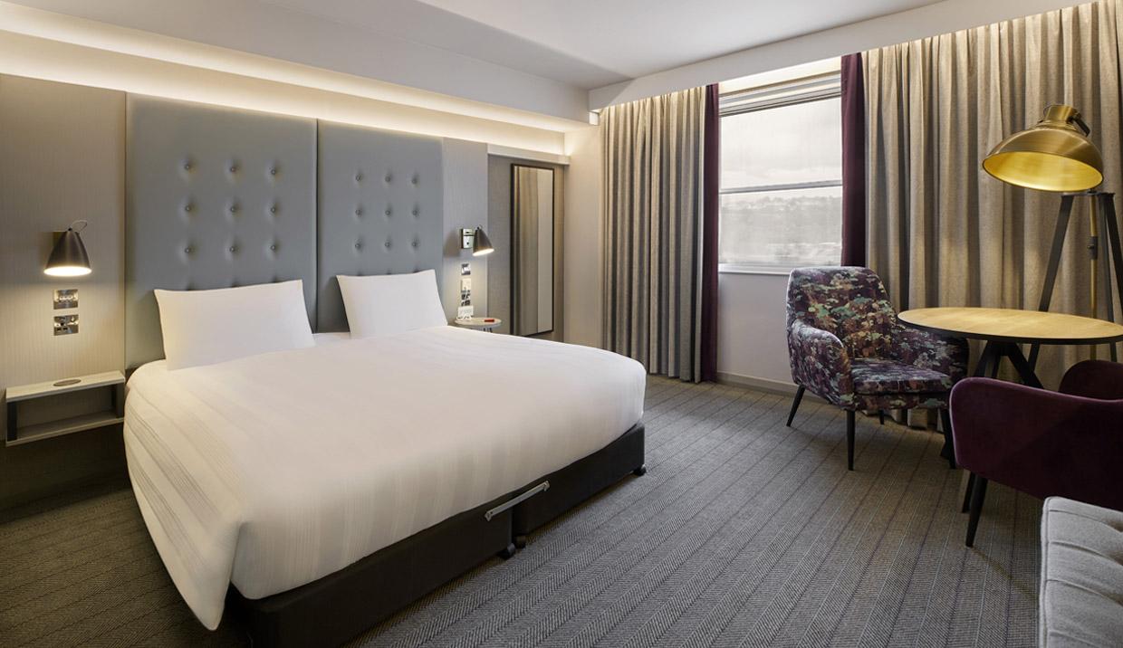 As well as more space, a double or kingsize bed between 480mm and 520mm in height, and wider entry bathrooms with a lowered bath or wet room, our Premier Plus Accessible rooms offer Ultimate Wi-Fi, a coffee machine, a mini-fridge, bedside USB ports, an iron, an upgraded workspace and more. At our hotels with 480mm height mattresses, our teams may be able to raise the bed for easier wheelchair access.