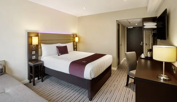 As well as more space, a double or kingsize bed between 480mm and 520mm in height, and wider entry bathrooms with a lowered bath or wet room, our Premier Plus Accessible rooms offer Ultimate Wi-Fi, a coffee machine, a mini-fridge, bedside USB ports, an iron, an upgraded workspace and more. At our hotels with 480mm height mattresses, our teams may be able to raise the bed for easier wheelchair access.